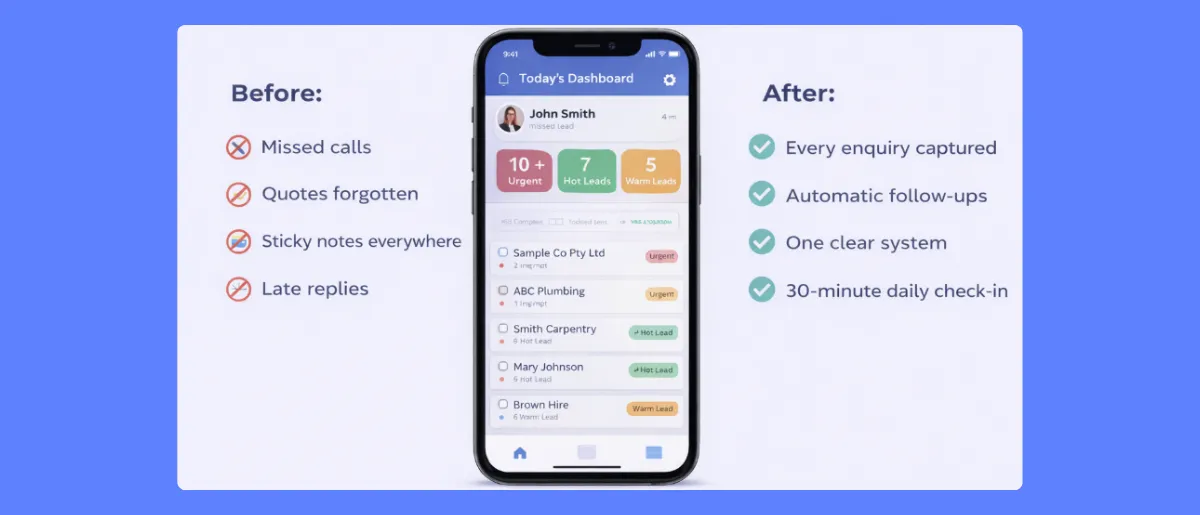 The simple system that captures, follows up, and organises every enquiry......even when you’re busy working.